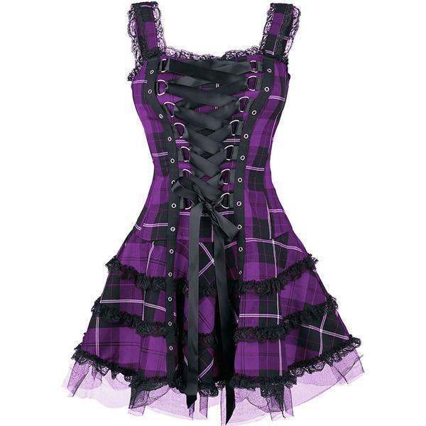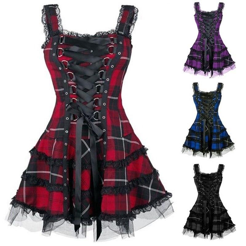 Женские классические кружевные платья с оборками, без рукавов, клетчатые винтажные готические мини-платья, бальные платья, костюм для косплея, платье больших размеров
