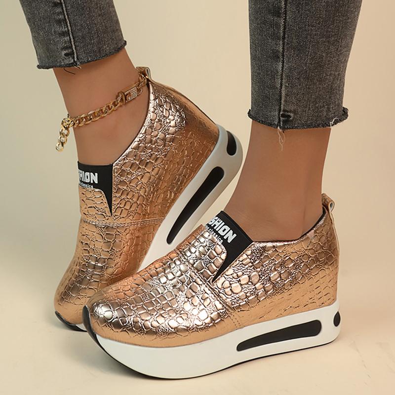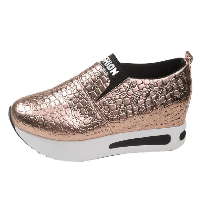 Серебряные золотые кроссовки со змеиным узором для женщин 2024 года, весенние кроссовки для увеличения роста, женские туфли-лоферы из искусственной кожи больших размеров 42
