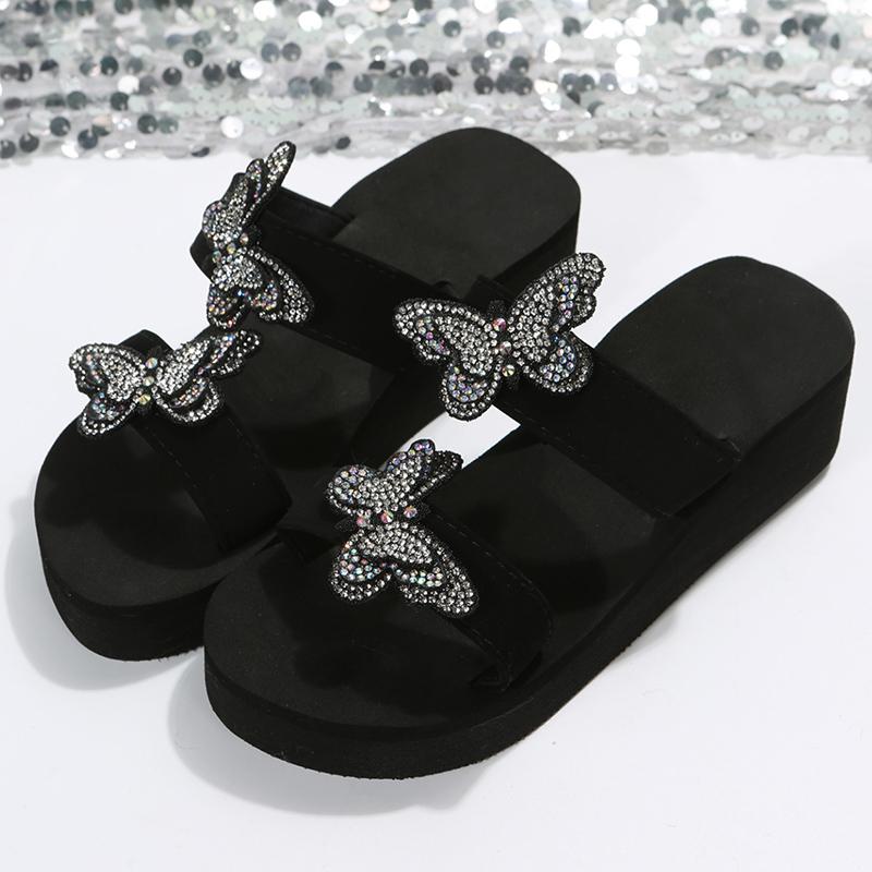 Lucyever Crystal Butterfly Клинья каблук Тапочки женские 2024 Большие размеры Толстая подошва сандалии женские Нескользящие шлепанцы на платформе Mujer