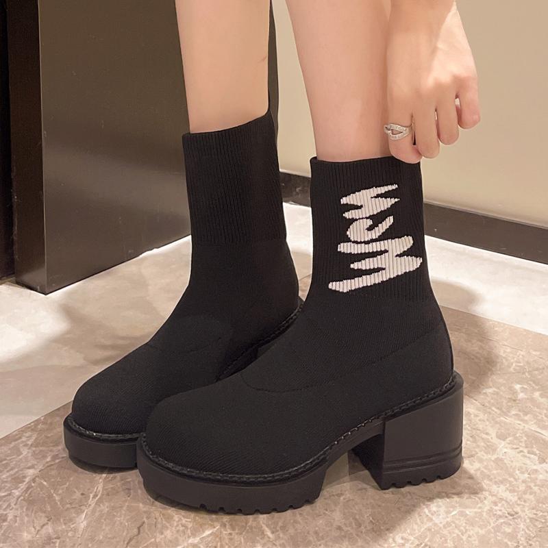 Женские вязаные высокие каблуки, ботильоны, высокие носки, толстые зимние ботинки на платформе 2025 года, новые трендовые брендовые ботинки Chelsea Snow, сексуальные туфли-лодочки из плетения