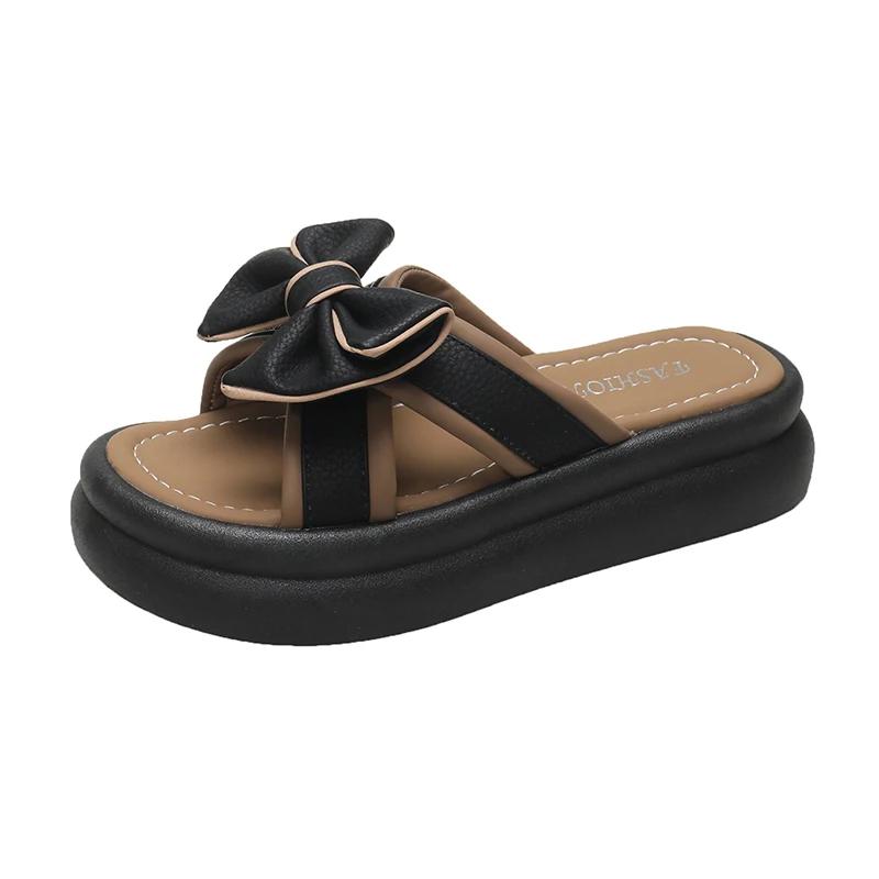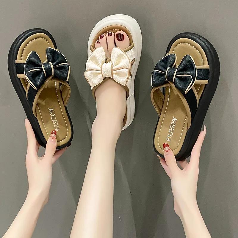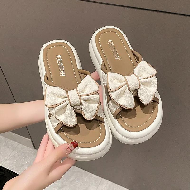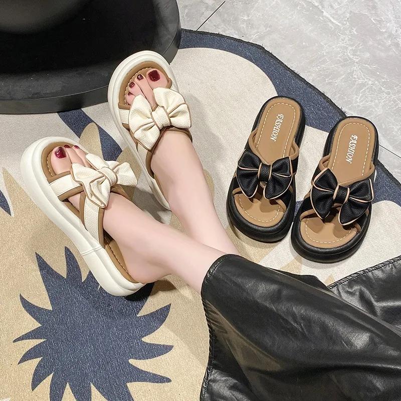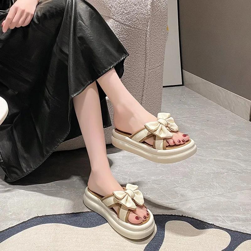 2024 Лето и весна Новые мягкие подошвы для ног, удобные домашние тапочки для отдыха, тапочки с бантом для женской верхней одежды в стиле феи