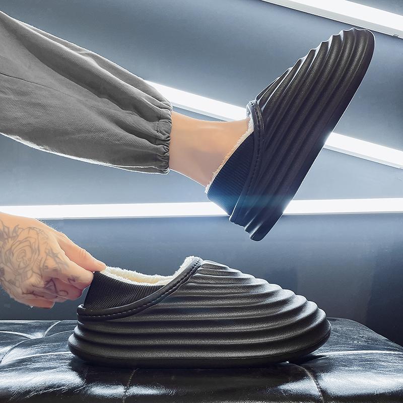 Модные мужские тапочки для дома, покрытие пятки, нескользящие, для пар, женская домашняя обувь на платформе, теплая обувь для мужчин, водонепроницаемые тапочки, добавьте бархат