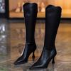 Острый носок женские высокие сапоги на высоком каблуке элегантная обувь 2025 тренд зима новый бренд туфли-лодочки до колена готическая мода Botas De Mujer