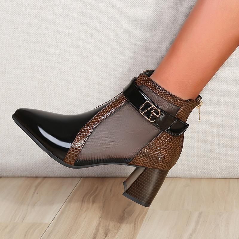 Ботильоны на высоком каблуке с острым носком, удобные, элегантные, из натуральной искусственной кожи, в стиле ретро, женские, лаконичные туфли, женские, Botines Mujer