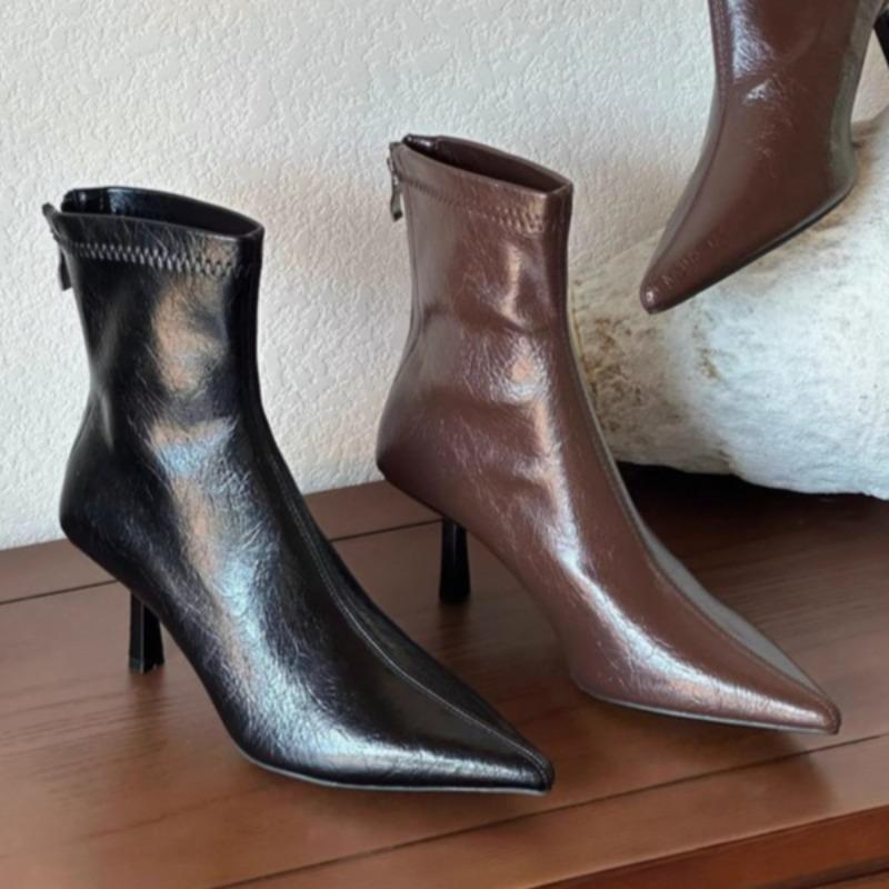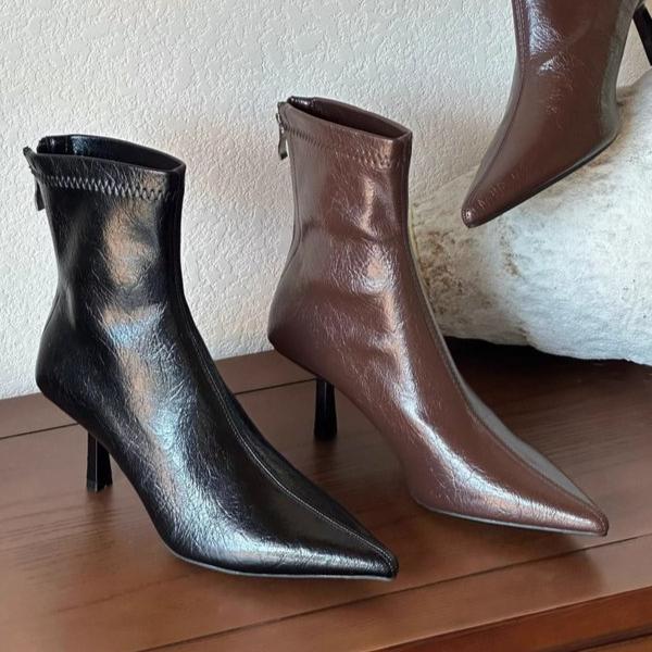 Острый носок женские ботильоны сексуальные высокие каблуки кожаные туфли 2025 тренд мода дизайнерские туфли-лодочки для вечеринок зимние челси Botas Mujer