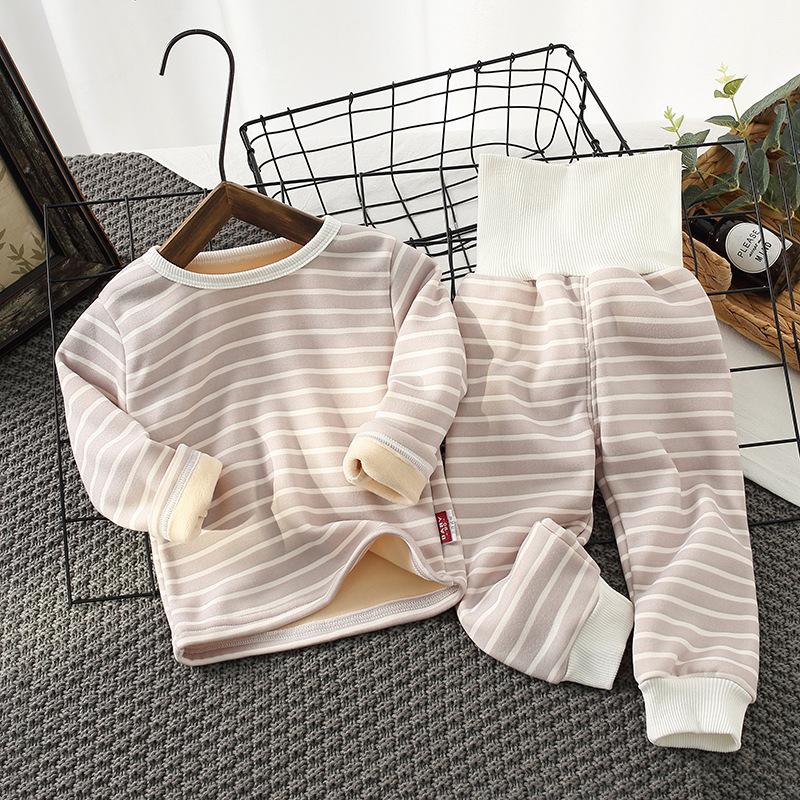 Осенне-зимние детские пижамы для мальчиков и девочек в полоску, утепленные, с высокой талией, теплые комплекты одежды, пижамы для малышей, одежда для сна
