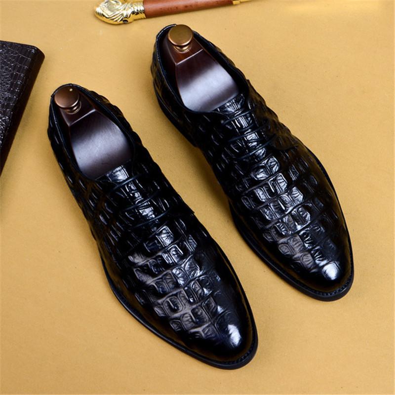 Брендовые деловые мужские туфли из натуральной кожи в стиле ретро из крокодиловой кожи, дизайнерские туфли-оксфорды из натуральной кожи для мужчин, размер EU 38-46