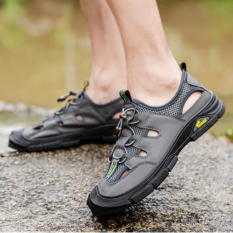 Модные новые мужские сандалии, летние дышащие сетчатые сандалии, мужские повседневные легкие пляжные сандалии ручной работы, мужская обувь для пешего туризма, нескользящая