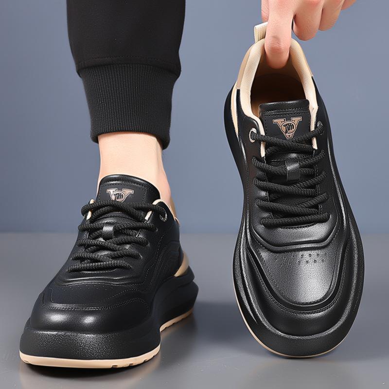 Модные мужские спортивные туфли из натуральной кожи. Удобный и универсальный стиль. Для отдыха на природе, для улиц и путешествий. Белые туфли на толстой подошве.