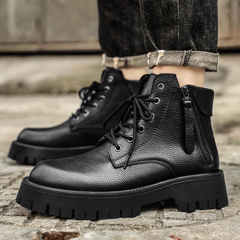Модные мужские кожаные туфли с круглым носком, модные и универсальные стили, для офиса, для езды на мотоцикле, мужские высококачественные ботинки для ходьбы