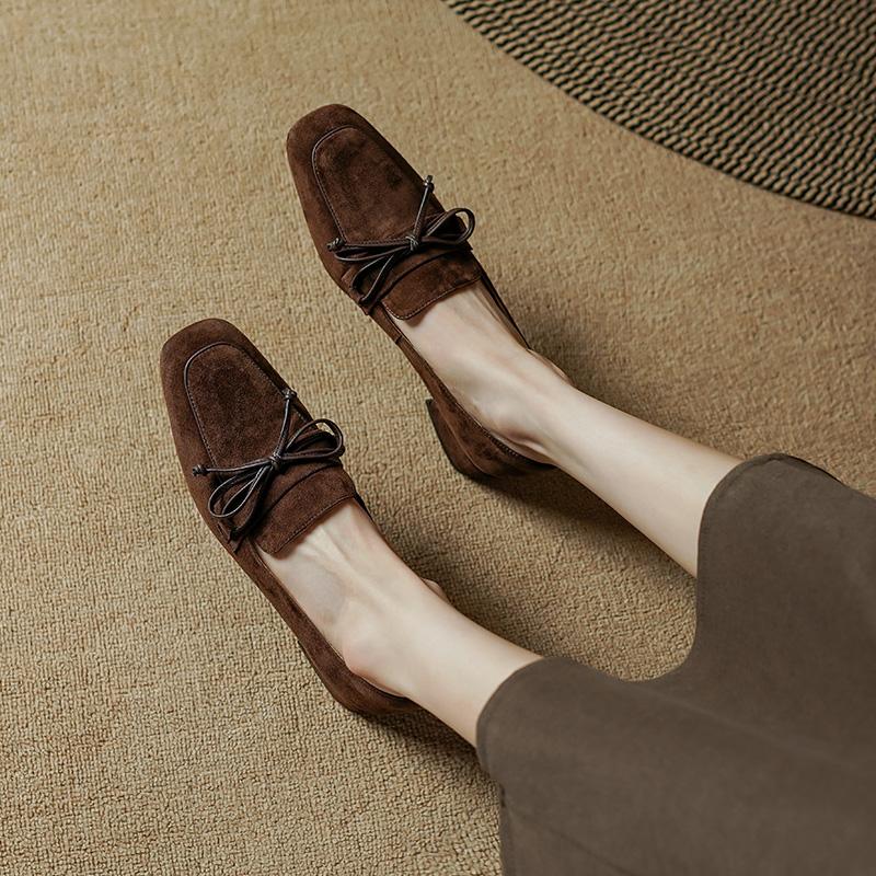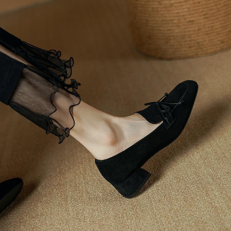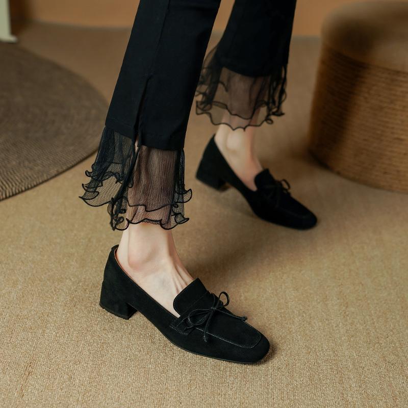 Модные классические женские туфли-лодочки с квадратным носком на высоком каблуке из натуральной кожи и замши, лаконичные женские туфли 2024 года, весна, офис, дамы, повседневные