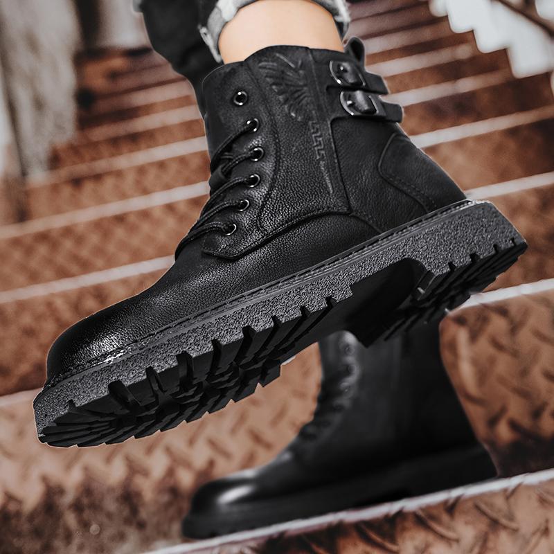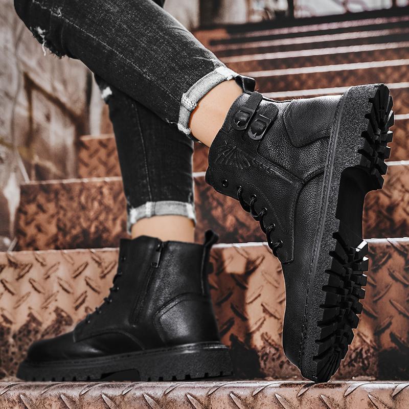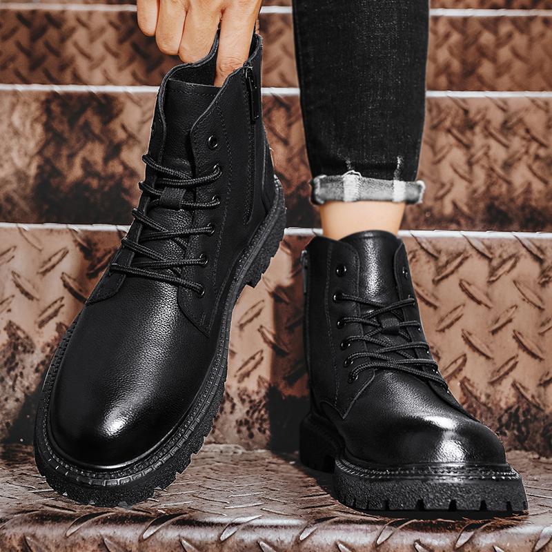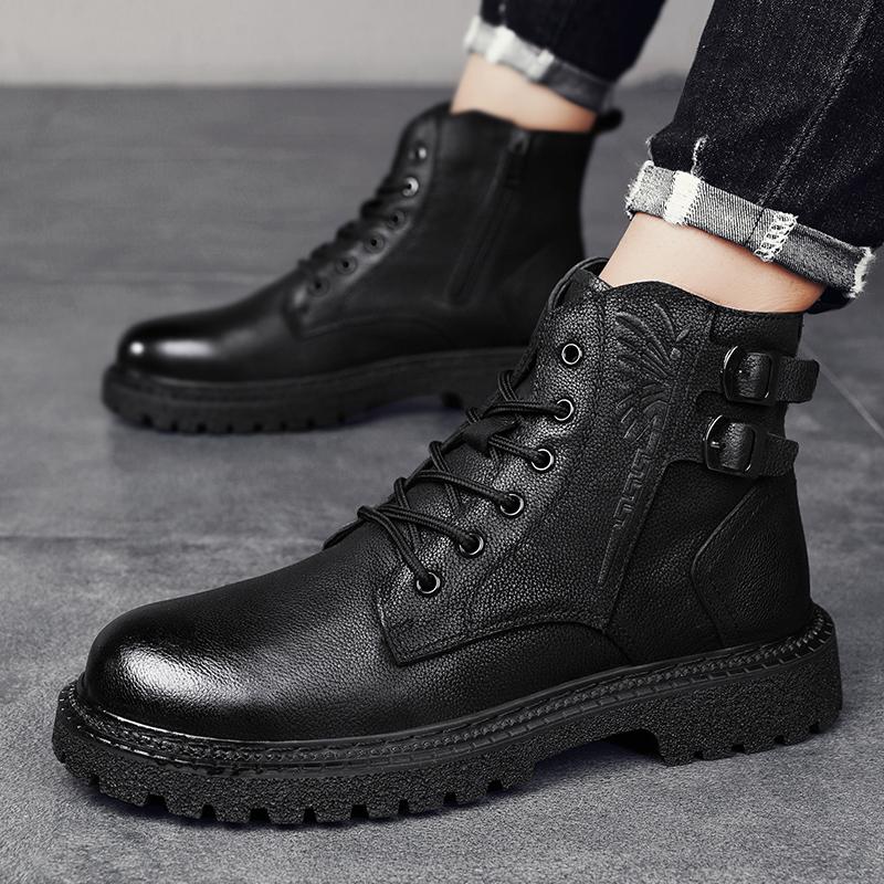 Модные осенние и зимние мужские ботинки Классические модные универсальные стильные для отдыха на открытом воздухе деловые туфли из натуральной кожи черного цвета для офиса