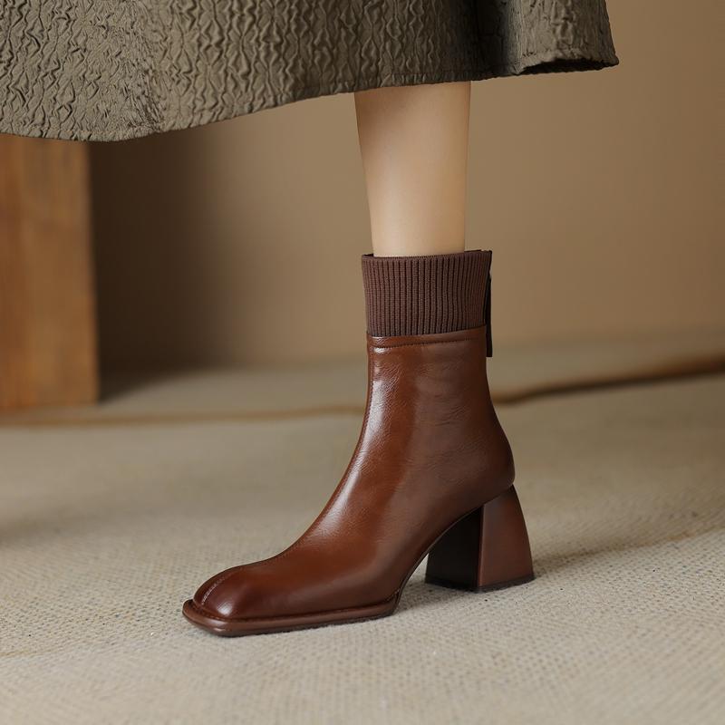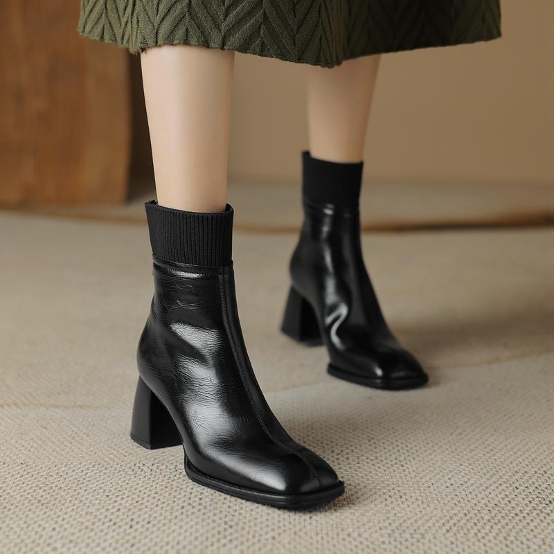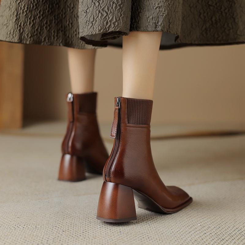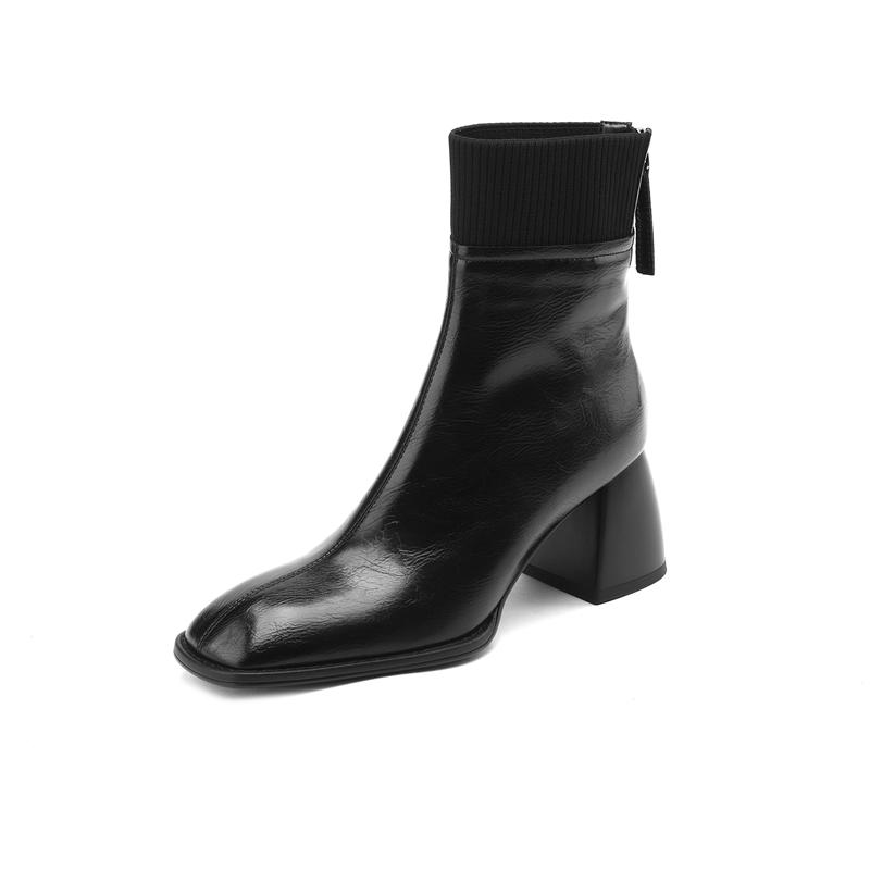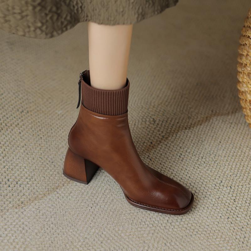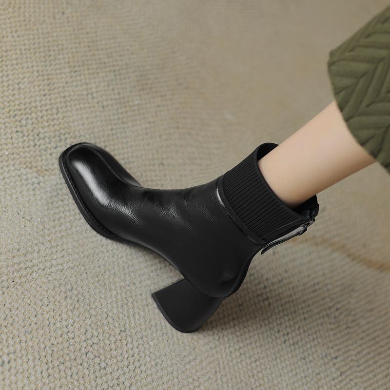 Сращивание натуральной кожи женские ботильоны толстые высокие каблуки молния сзади украшения Базовые офисные туфли для женщин осень зима