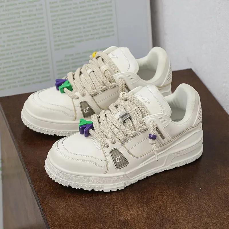 Новые белые кожаные повседневные спортивные туфли для пар, модные и универсальные, на шнуровке, для активного отдыха, большие размеры 36-44 — купить товар онлайн с бесплатной доставкой по всему миру!
