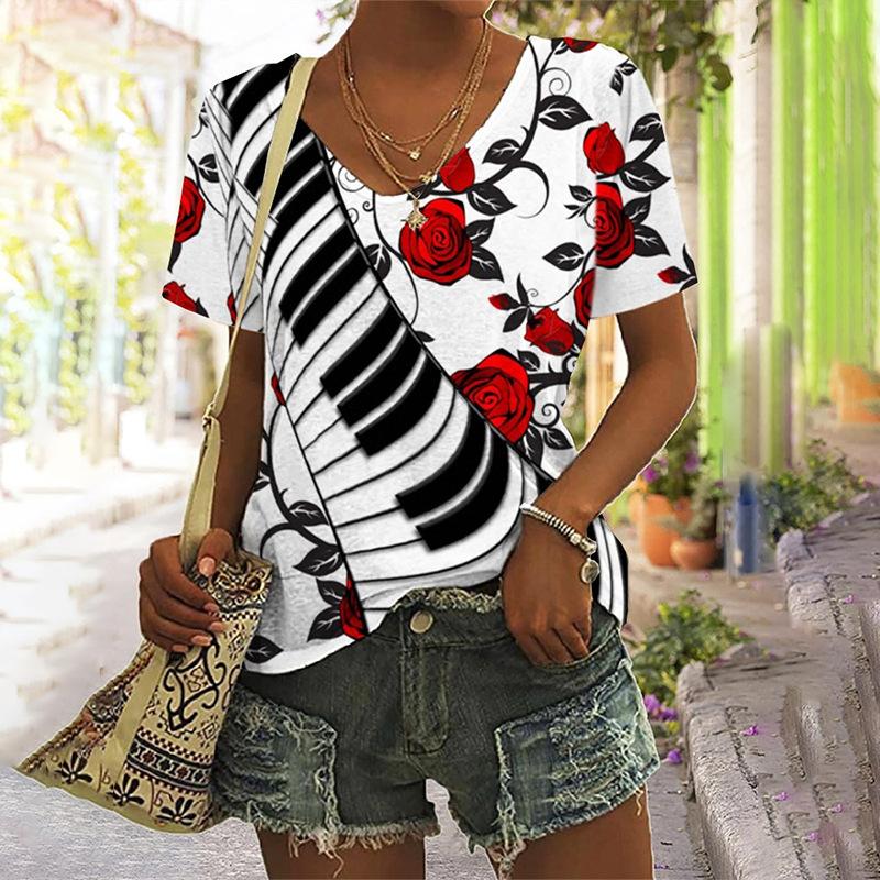 3D цифровая печать женская футболка топ плюс размер женские футболки с V-образным вырезом короткий рукав