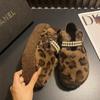 Модные женские туфли из хлопка с меховым леопардовым принтом, туфли на плоской подошве и бисером на платформе, женские 2025, трендовые зимние повседневные теплые платья с бантом, удобные зимние сапоги Mujer