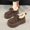 Модные женские ботильоны на платформе, замшевые туфли на плоской подошве, короткие плюшевые теплые ботинки, тренд 2025 года, зимние модные короткие сапоги, удобные, новые женские ботинки