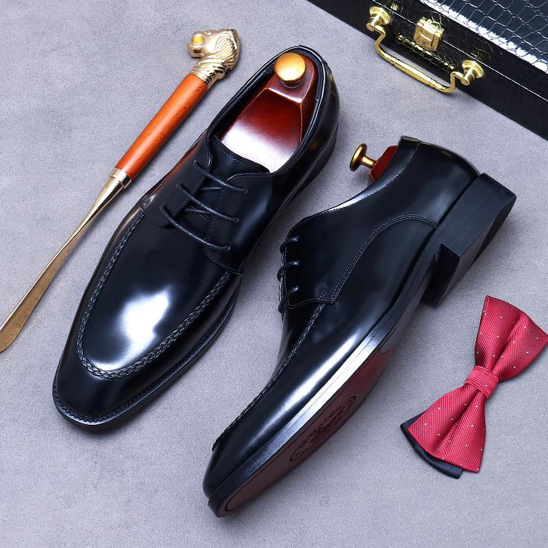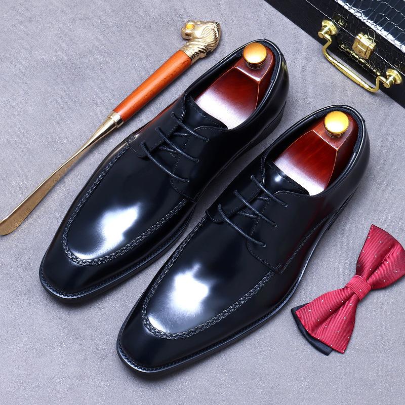 Качественные деловые мужские туфли, британские трендовые мужские туфли из натуральной кожи, удобные свадебные туфли для жениха на плоском каблуке