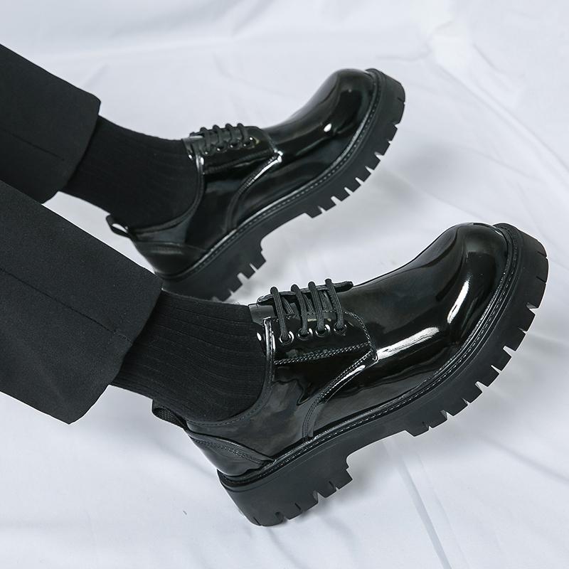 Весенние классические черные туфли на платформе, мужские деловые кожаные туфли с круглым носком и толстой подошвой, со шнуровкой, свадебные туфли с глянцевой поверхностью — купить товар онлайн с бесплатной доставкой по всему миру!