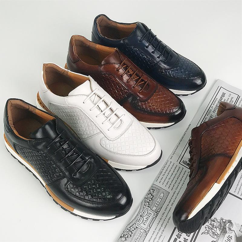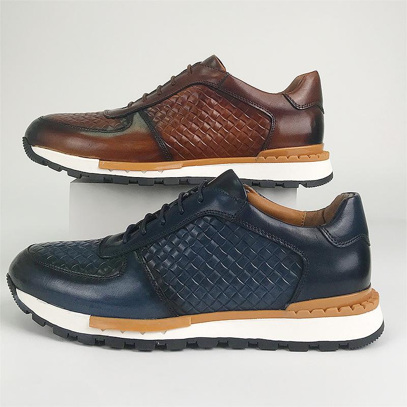 Мужские кроссовки из натуральной кожи с плетеным узором на шнуровке, удобные классические дышащие кроссовки для отдыха на открытом воздухе, повседневная обувь на плоской подошве для мужчин
