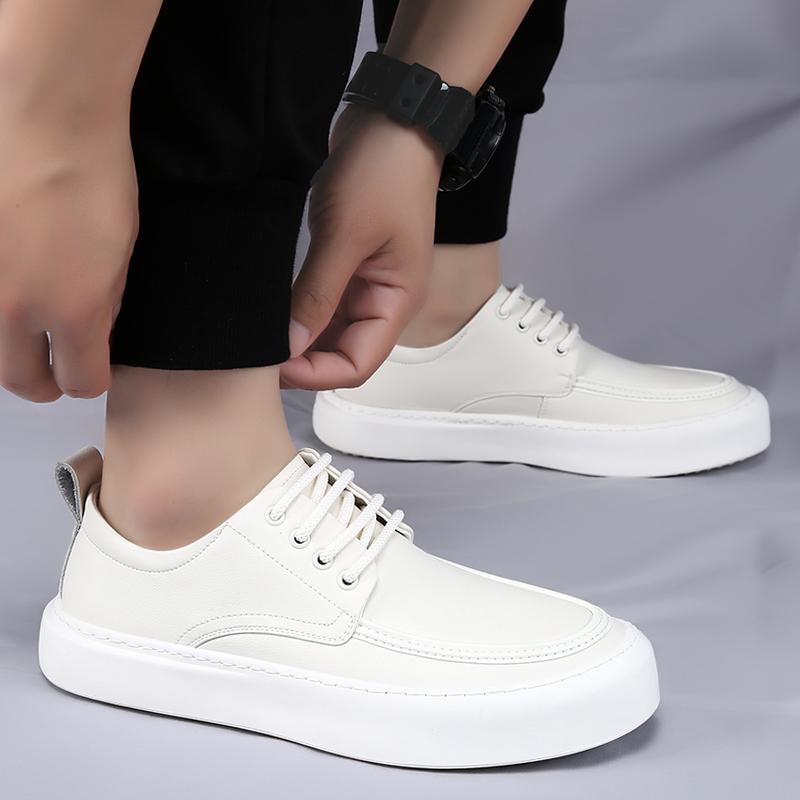 Модные брендовые мужские удобные кожаные повседневные туфли с круглым носком, весенние классические белые уличные нескользящие спортивные повседневные туфли