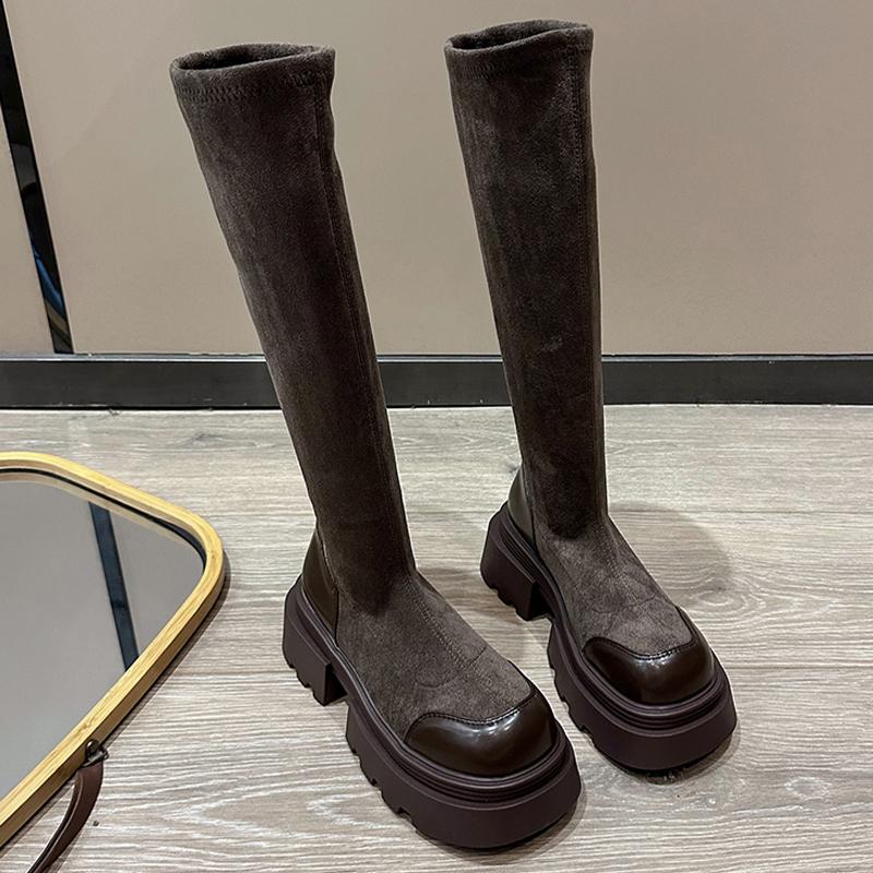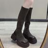 Модные высокие сапоги на платформе женские замшевые туфли на плоской подошве женские 2024 трендовые зимние дизайнерские туфли на среднем каблуке новые мотоциклетные сапоги трендовая женская обувь