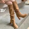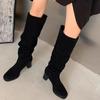 Модные туфли на высоком каблуке женские высокие сапоги замшевые туфли зимняя новая дизайнерская обувь женская 2024 трендовая обувь для ходьбы туфли-лодочки платье женские туфли
