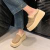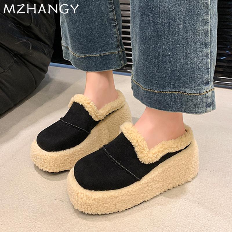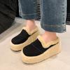 Модные женские меховые хлопковые тапочки на платформе с танкеткой, повседневные мюли, туфли с открытой пяткой, женские зимние трендовые шлепанцы 2025 года, женские зимние сапоги