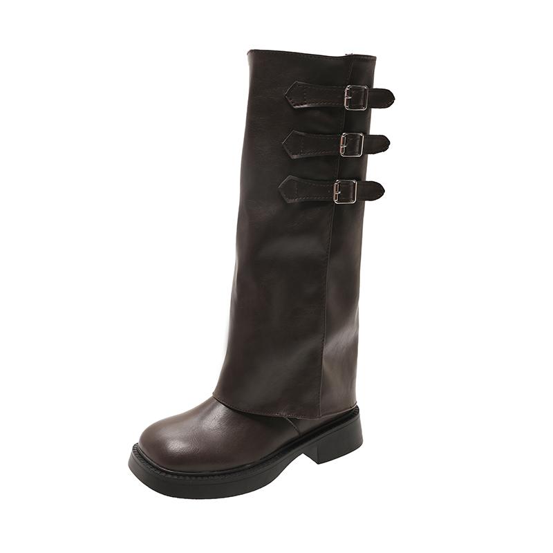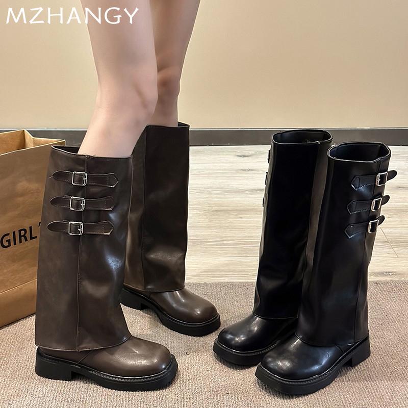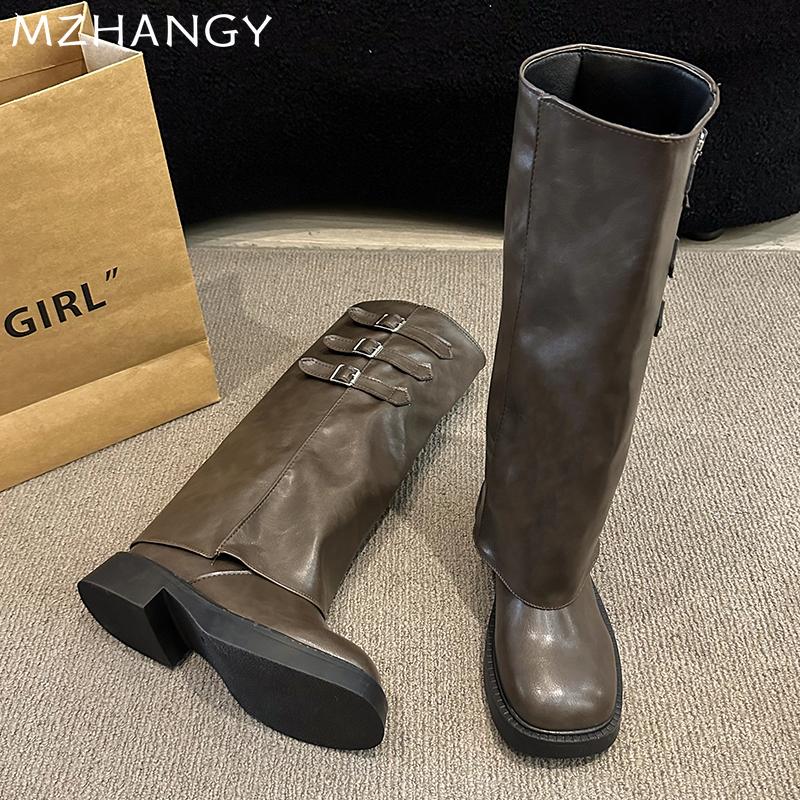 Модные зимние женские кожаные высокие сапоги на плоской подошве до колена модные женские туфли 2025 года трендовые ботинки челси новые женские зимние мотоциклетные сапоги