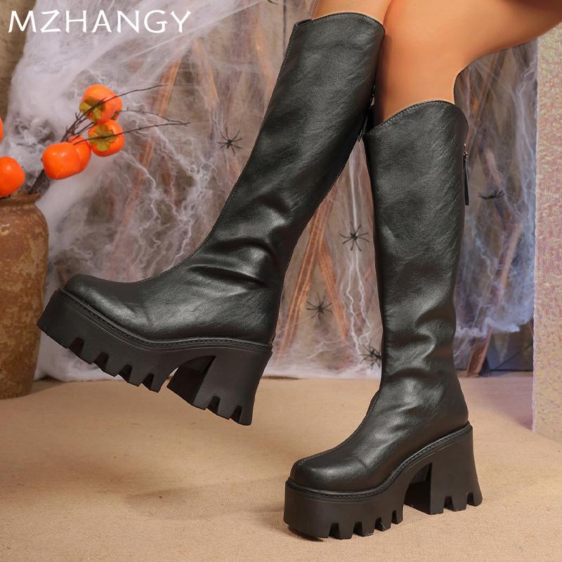 Модные женские кожаные высокие сапоги на высоком каблуке, дизайнерская модная теплая повседневная обувь для ходьбы, женский тренд 2024, новые зимние снежные уютные ботильоны