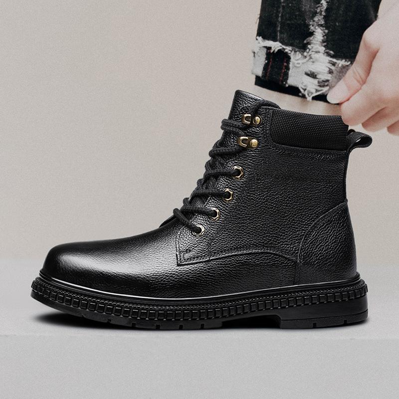 Высококачественные мужские рабочие ботинки из коровьей кожи, фирменные классические высокие ботинки на шнуровке, толстые подошвы с усиленным противоскользящим покрытием