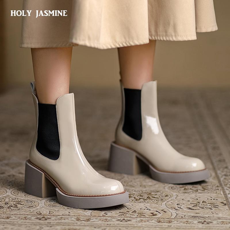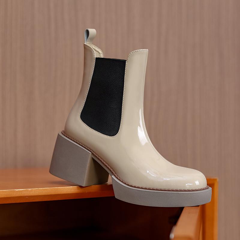 Модные женские ботильоны из коровьей кожи, повседневные, на квадратном каблуке, офисные женские ботинки «Челси», толстая подошва, нескользящая, без застежек, женская обувь