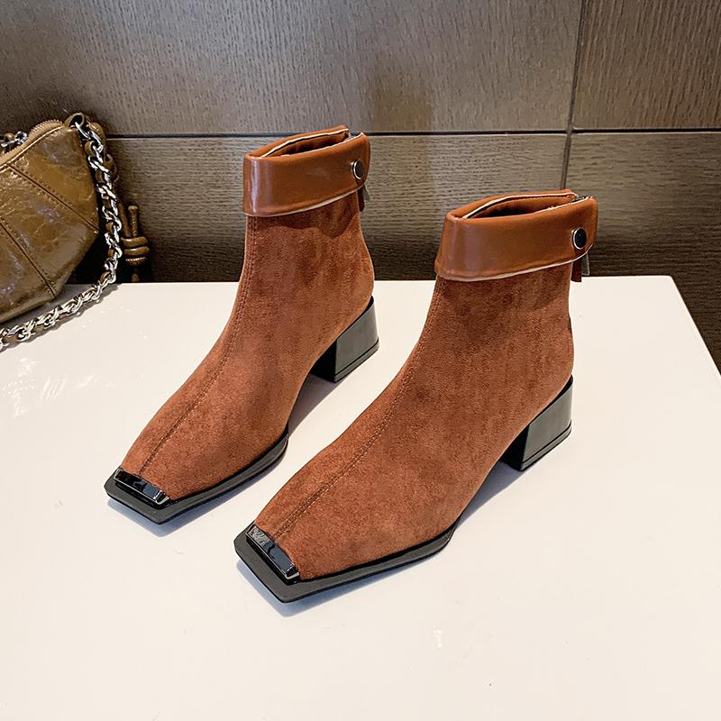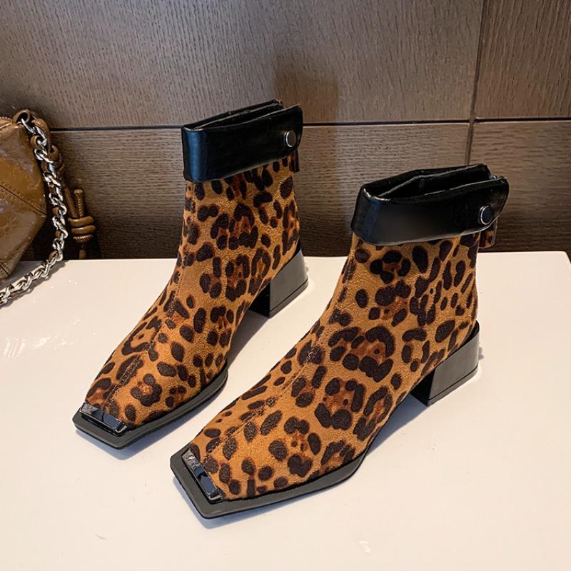 Женские ботильоны с квадратным носком и леопардовым принтом, модные замшевые туфли на среднем каблуке, женский бренд 2025 года, трендовая вечеринка, элегантные массивные туфли Botas Mujer