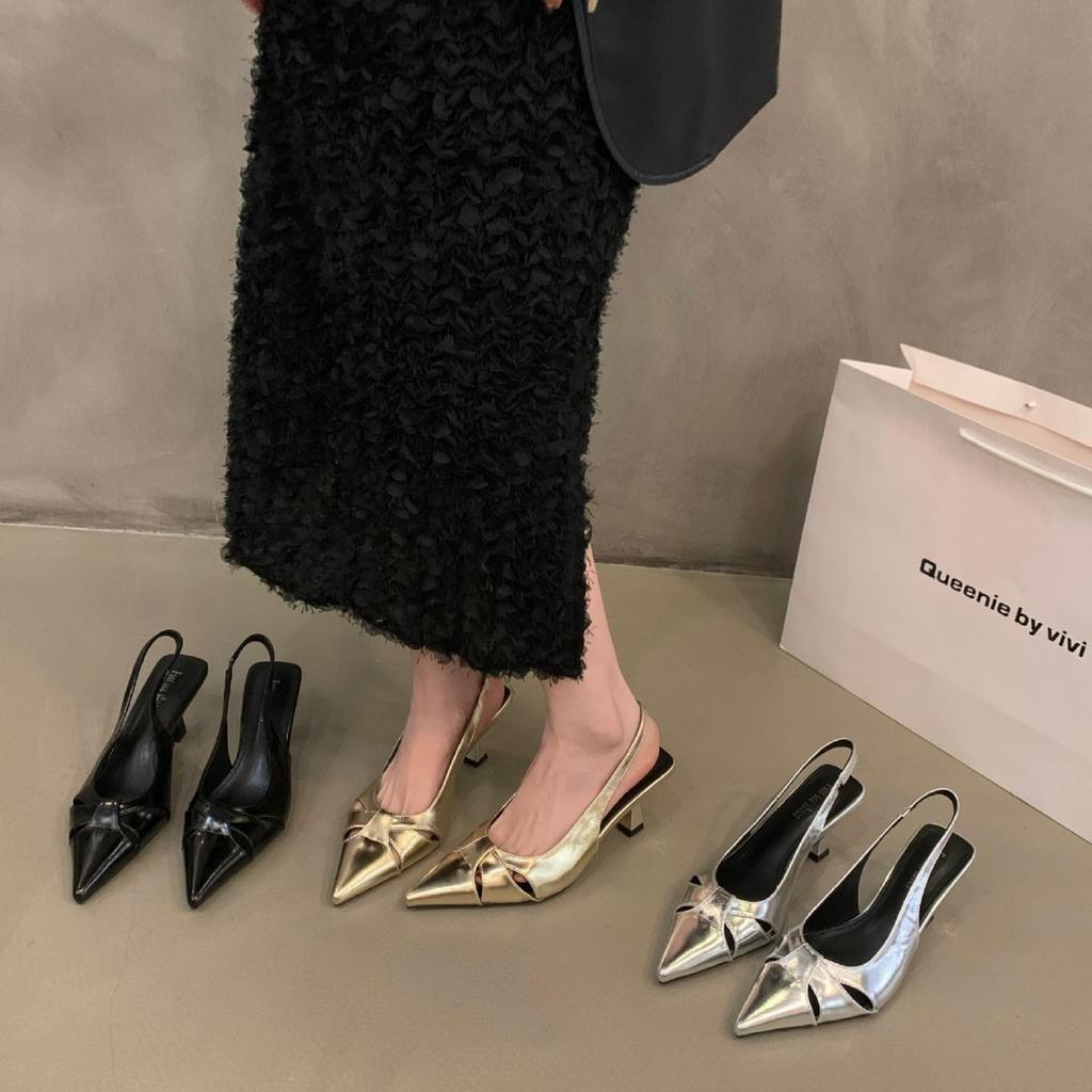 Модные французские темпераментные черные босоножки Baotou на высоком каблуке для женщин 2024 года, новые летние серебристые туфли с острым носком — купить товар онлайн с бесплатной доставкой по всему миру!