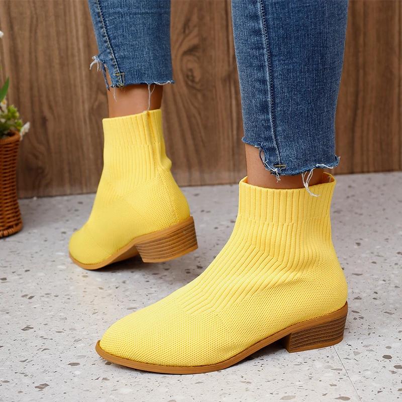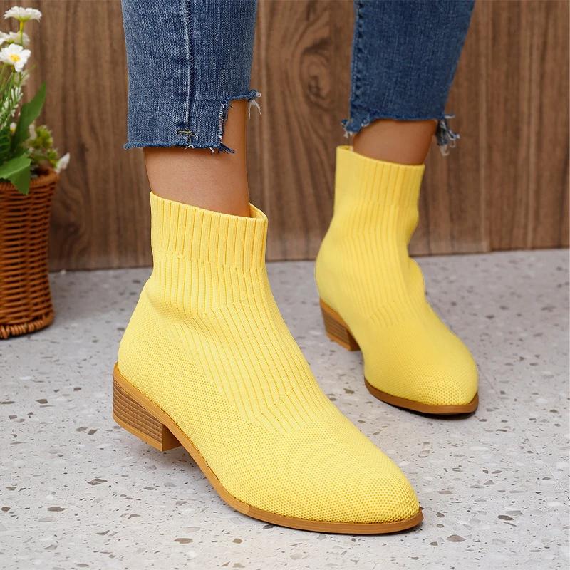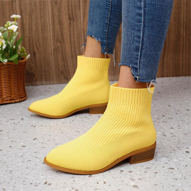 Модные женские вязаные остроносые носки-сапоги на плоской подошве 2024 года зимняя мода прогулочная обувь вечернее трендовое платье Chaussures Femme