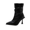 Ботильоны на высоком каблуке женские осень-зима новые остроносые коричневые ботинки на молнии кожаные модные сексуальные роскошные брендовые плиссированные дизайнерские ботинки