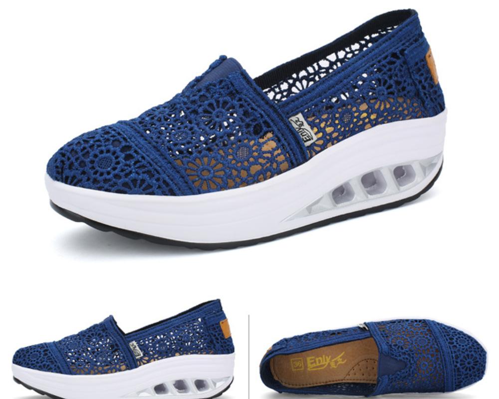 Модные кружевные кроссовки женские полые вулканизированные туфли сексуальные кружевные дышащие повседневные туфли на танкетке 2024 летние туфли без застежек женские