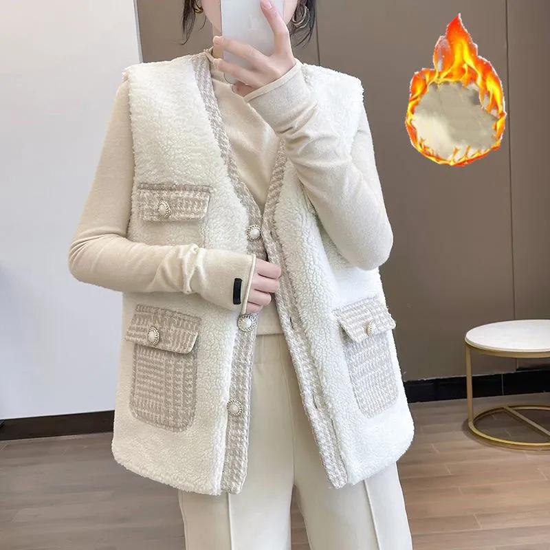 Плюшевый жилет женский осенне-зимний удобный мягкий теплый топ без рукавов с v-образным вырезом на пуговицах свободный кардиган жилет