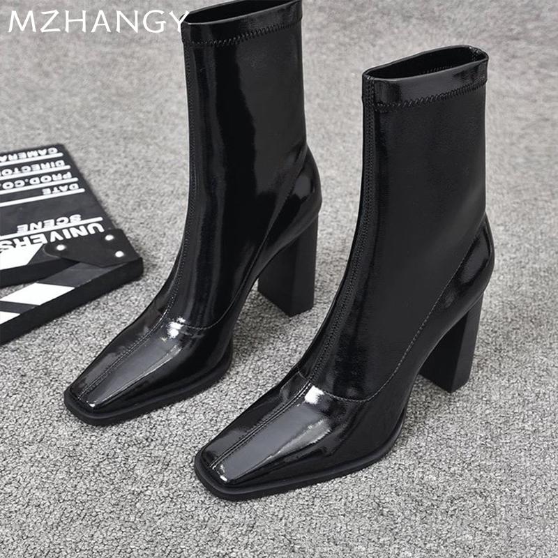 Модная зимняя женская обувь, кожаные ботильоны на высоком каблуке, модная сексуальная обувь для женщин, тренд 2024, новые дизайнерские туфли-лодочки, готика, классические ботильоны для женщин