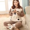 Плотный теплый женский пижамный комплект, зимняя одежда для сна, повседневный однотонный топ и клетчатые брюки, мягкий пижамный комплект для женщин, домашние костюмы