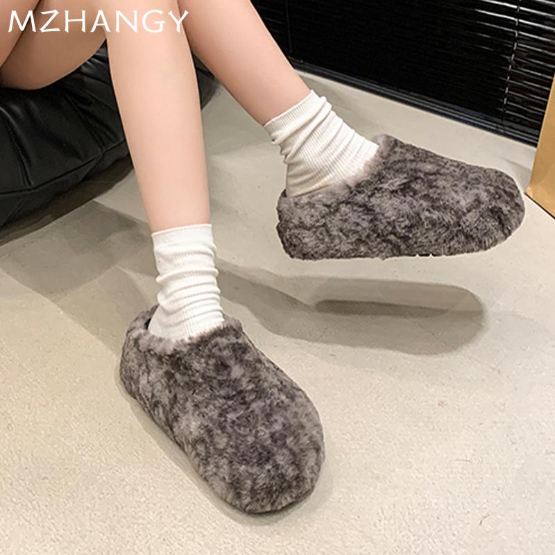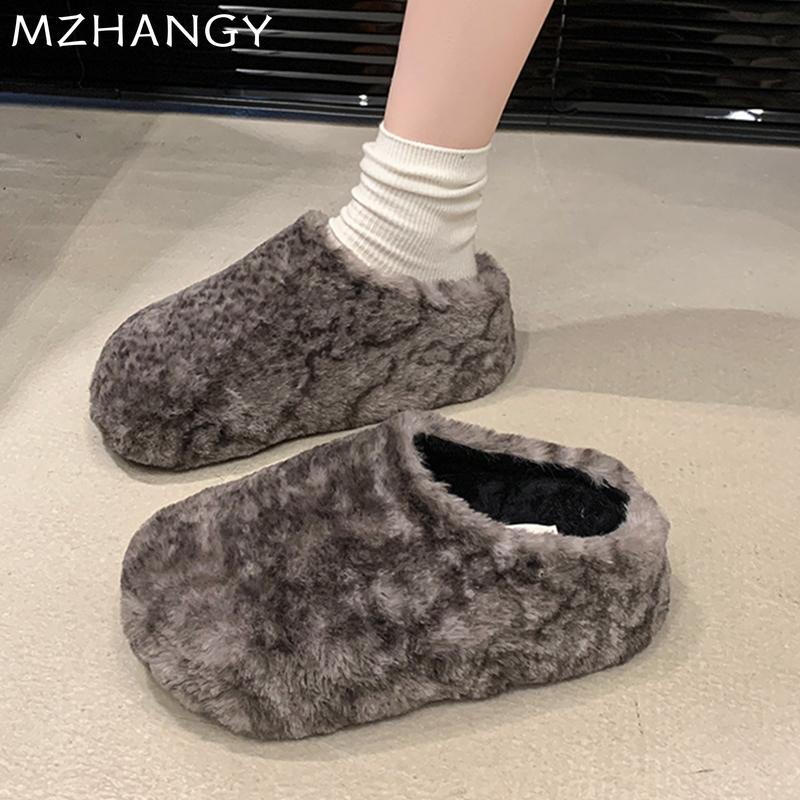 Модные женские меховые балетки из хлопка, зимние повседневные хлопковые туфли для женщин 2025 года, модные теплые удобные зимние ботинки с открытой пяткой, шлепанцы