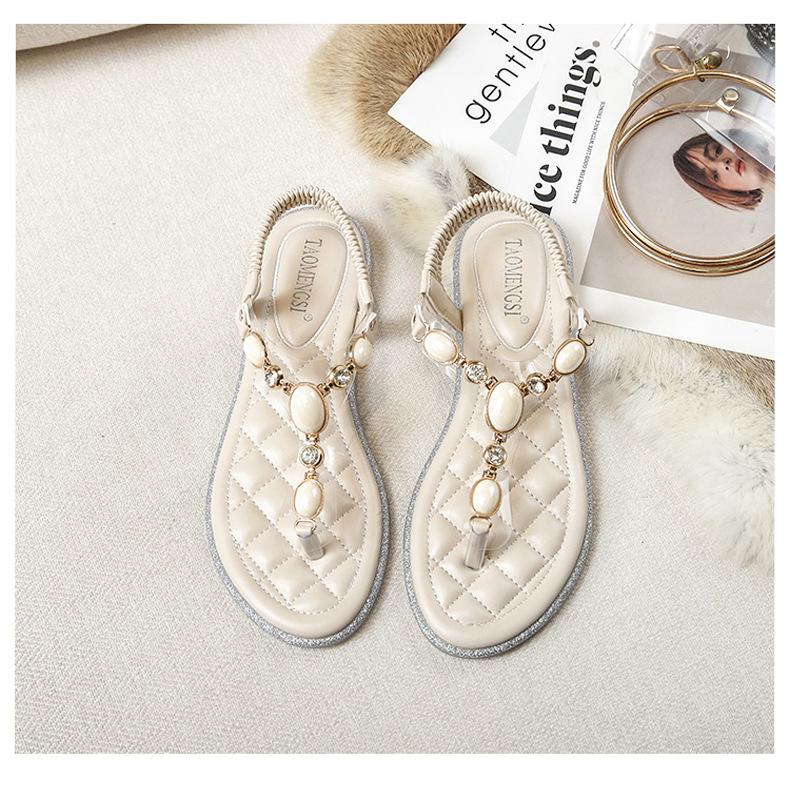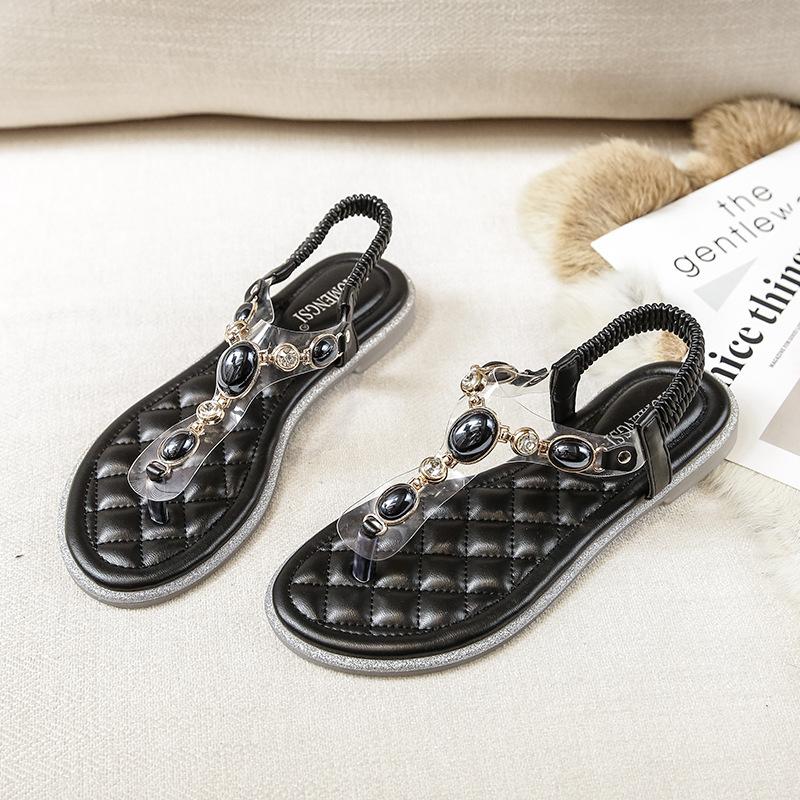 Модная обувь 2024 года для женщин, красивые сандалии, летние тапочки для девочек большого размера с бусинами, женские повседневные туфли на плоской подошве
