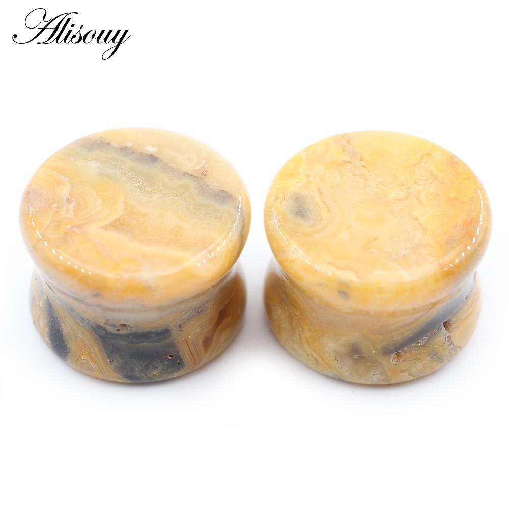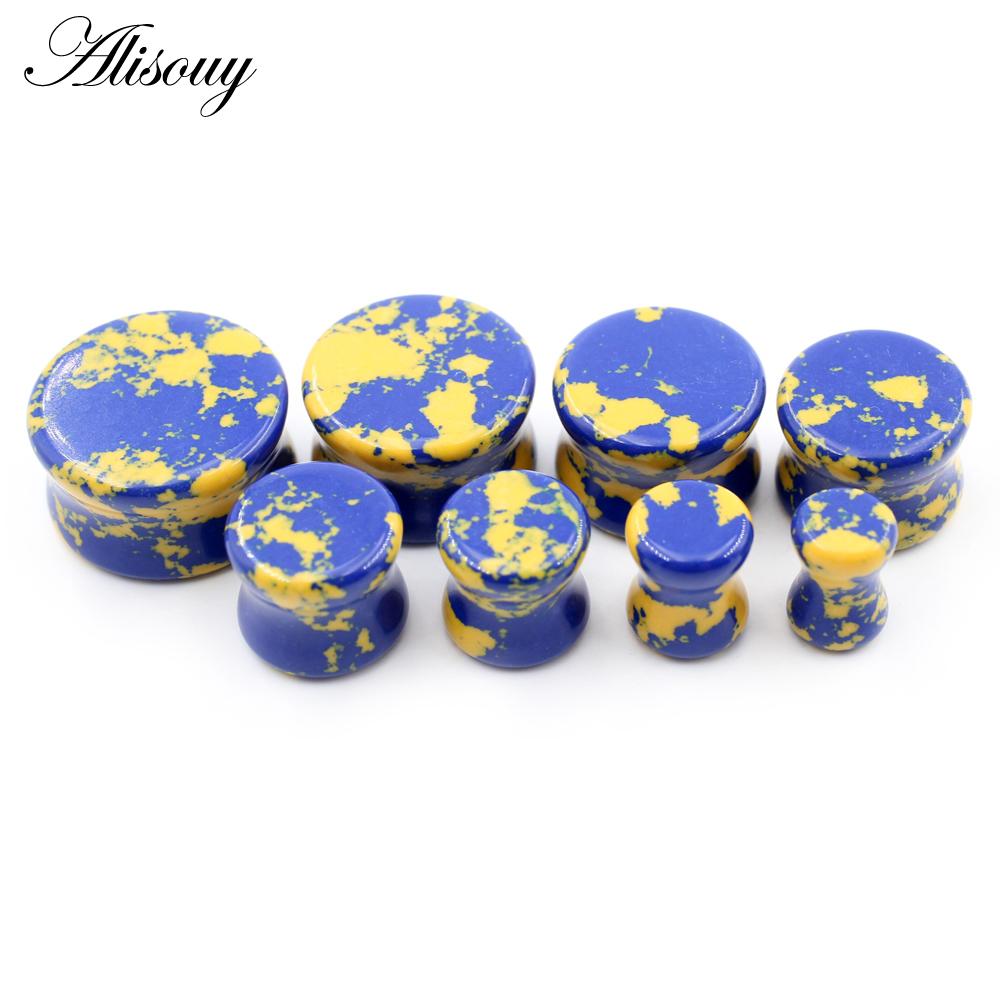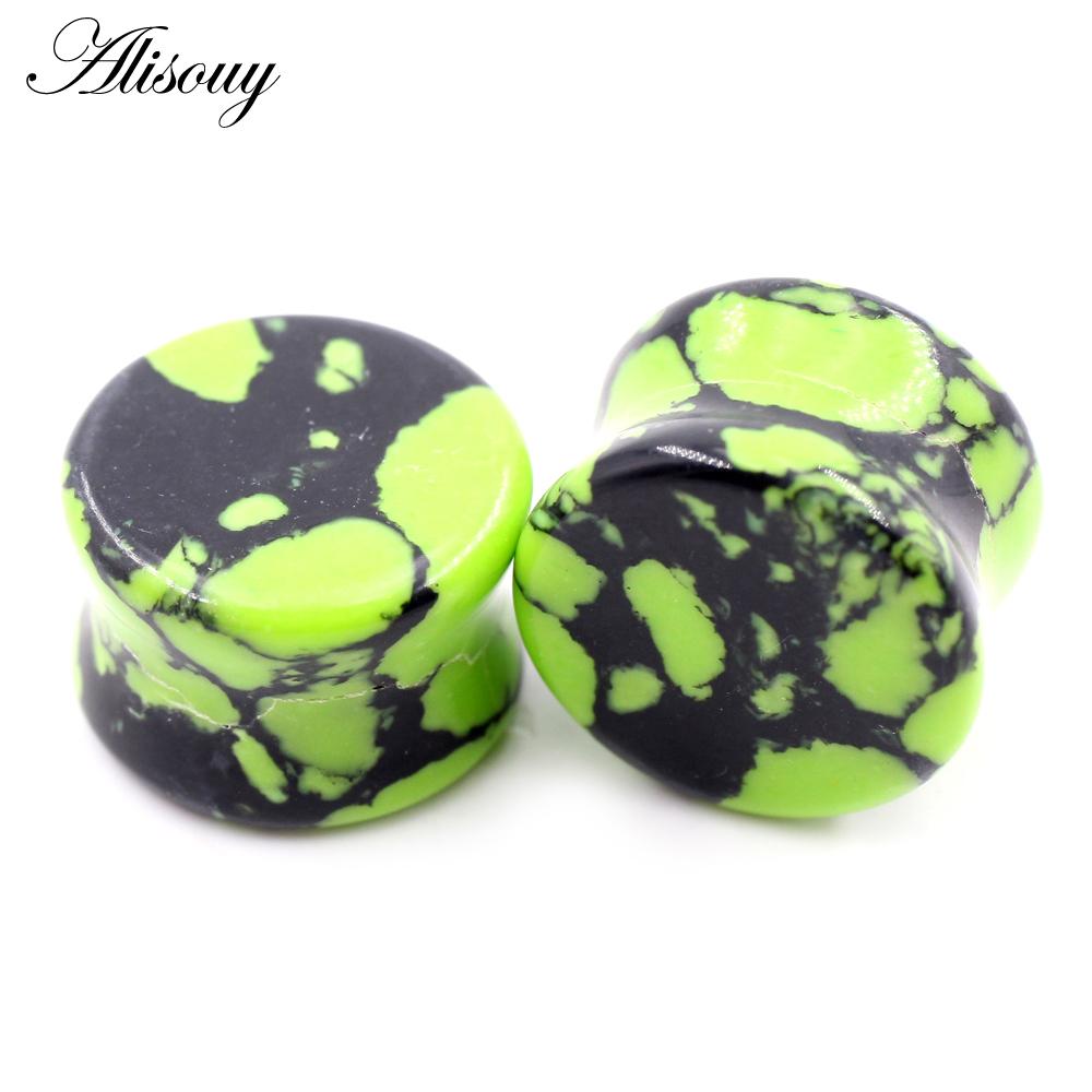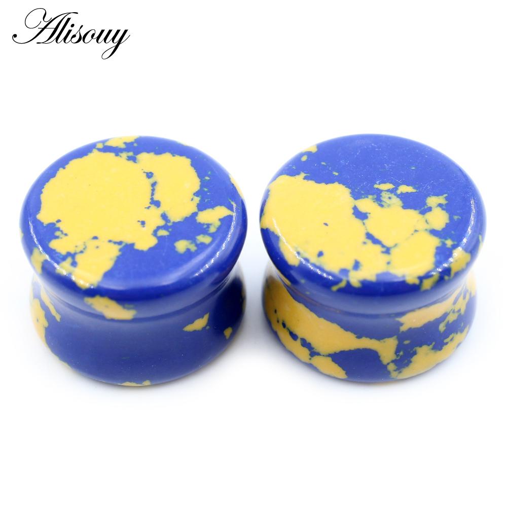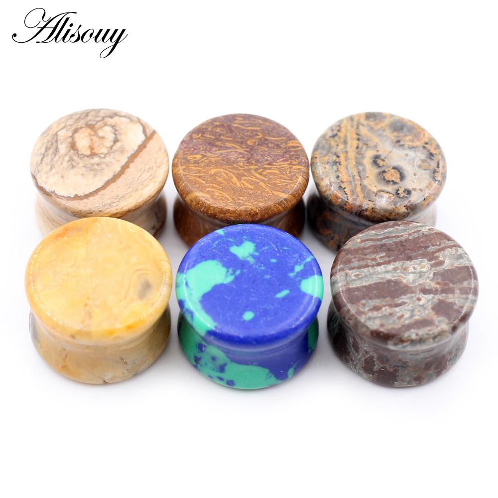 Alisouy 2 шт., цветные натуральные камни, двойные расклешенные ушные туннельные затычки, растягивающие плоть, расширители, серьги, пирсинг, украшения для тела