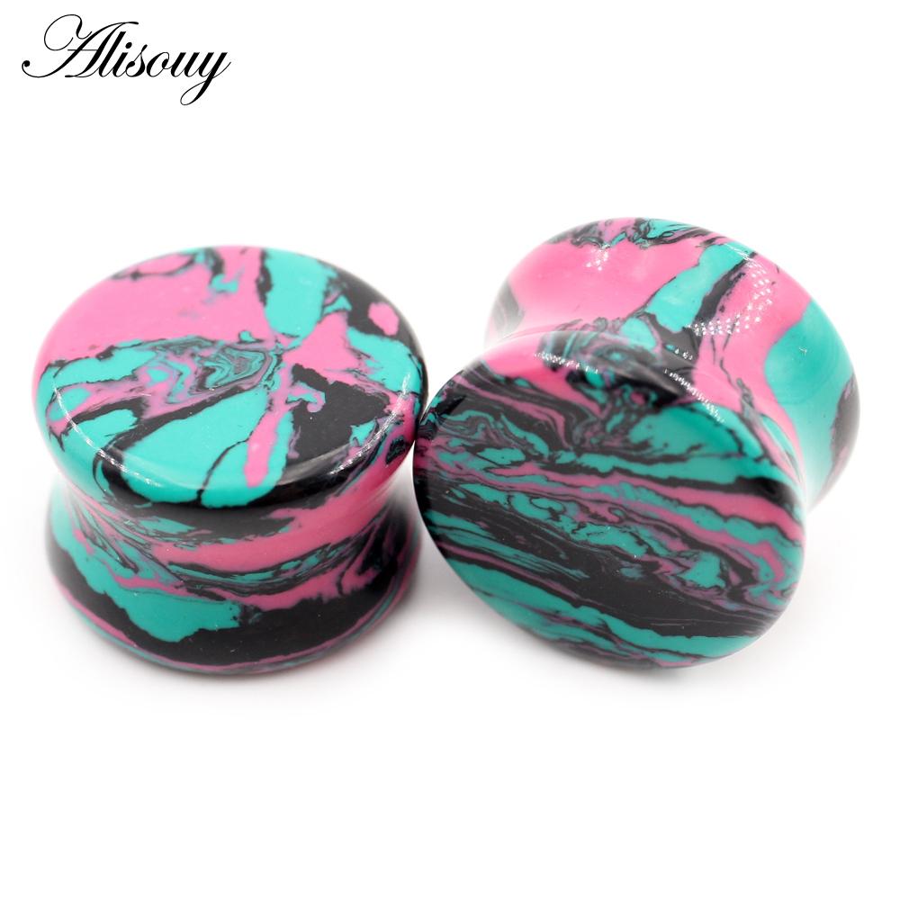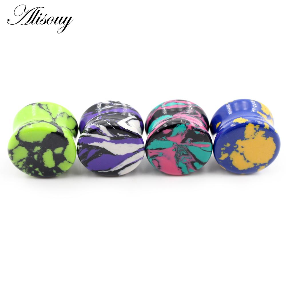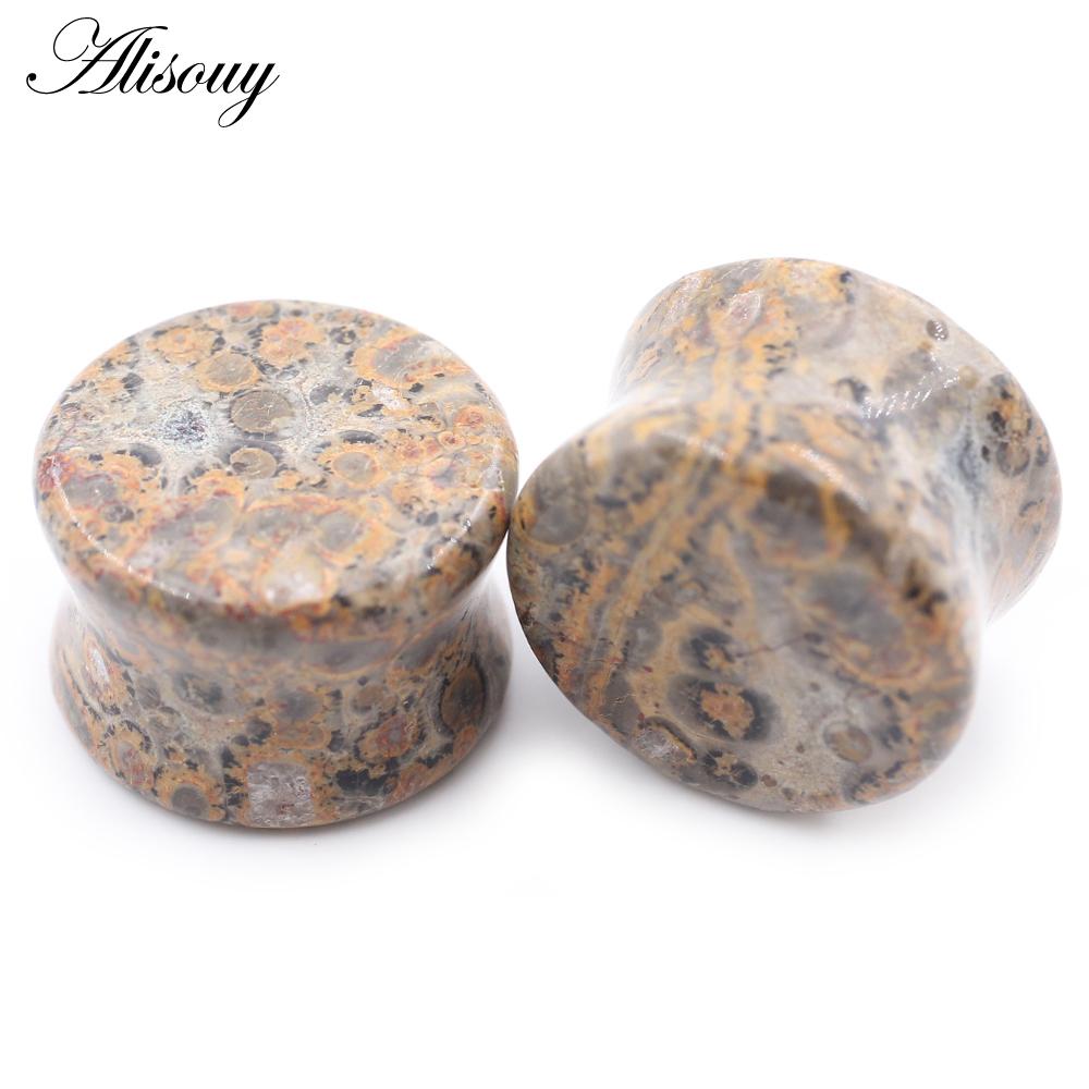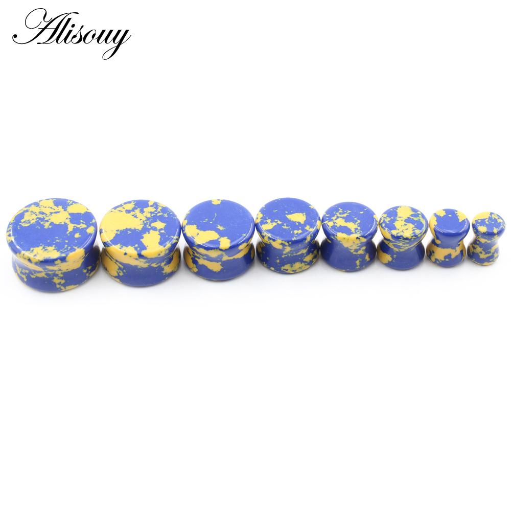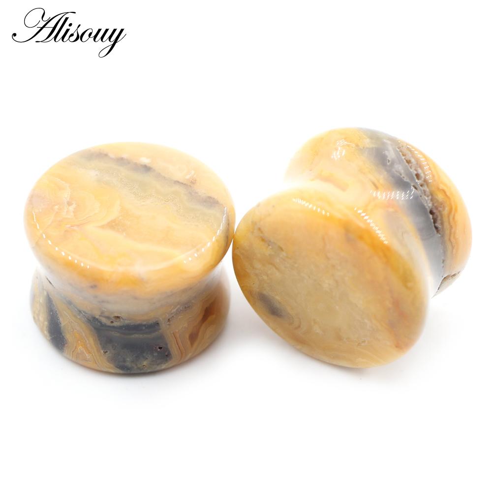 Alisouy 2 шт., цветные натуральные камни, двойные расклешенные ушные туннельные затычки, растягивающие плоть, расширители, серьги, пирсинг, украшения для тела