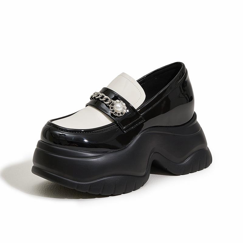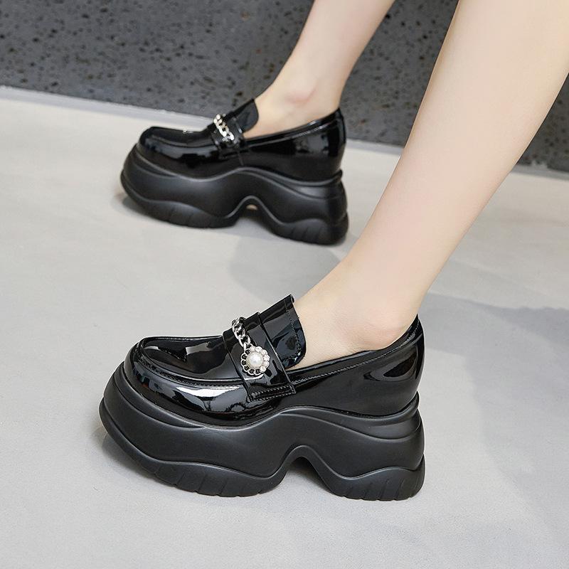 Мокасины на платформе, женская мода, универсальные черные кожаные туфли, британский стиль, внутренняя высота, женская обувь
