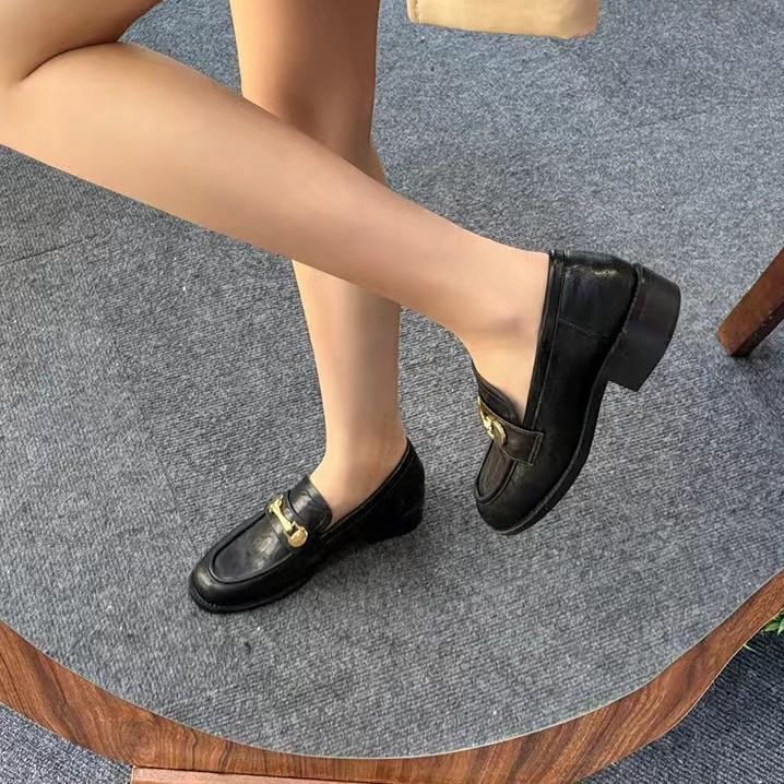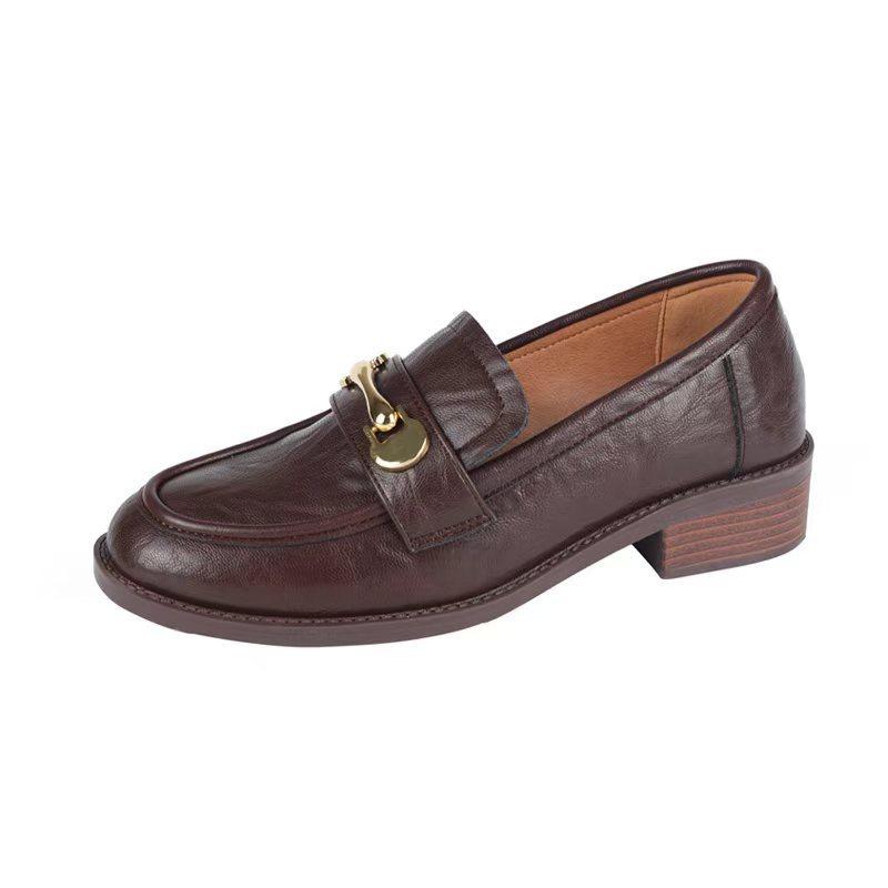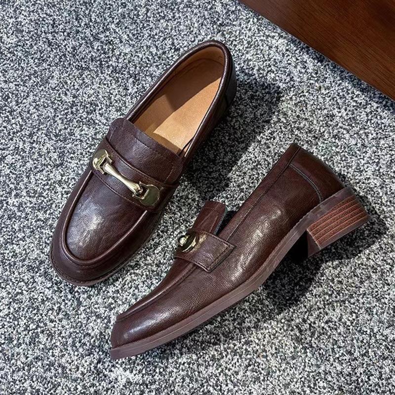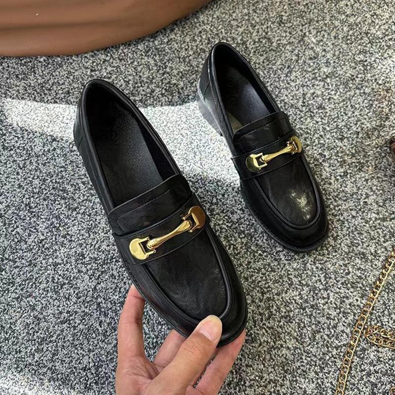 Туфли-лоферы Lazy Person Pedal на толстой подошве, женские, ретро, с толстым каблуком, металлической пряжкой, удобные, универсальные, с глубоким носком