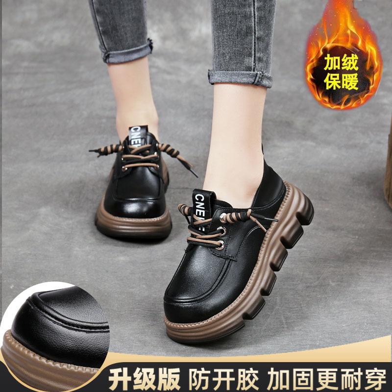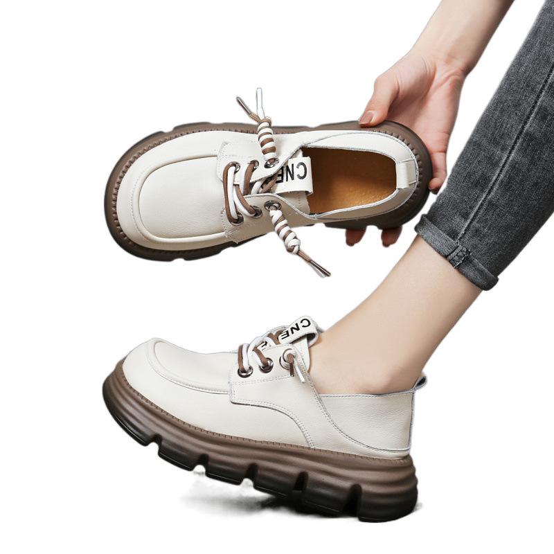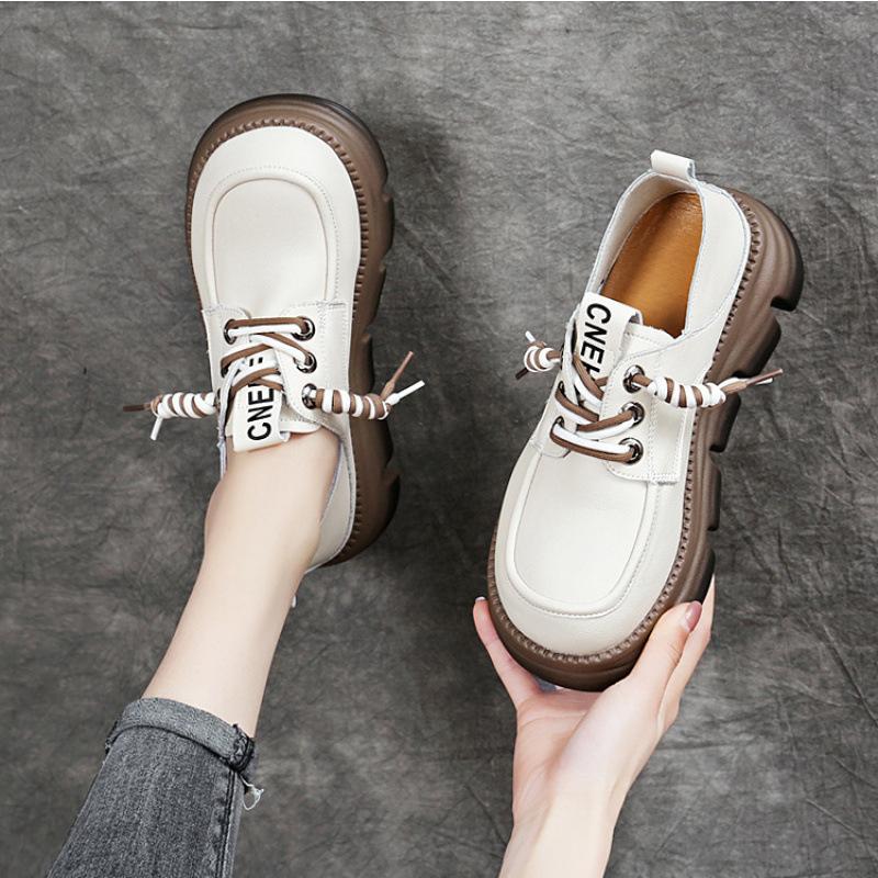 Настоящие мягкие кожаные мокасины женские в британском стиле на толстой подошве со шнуровкой универсальные удобные маленькие кожаные туфли с мягкой подошвой