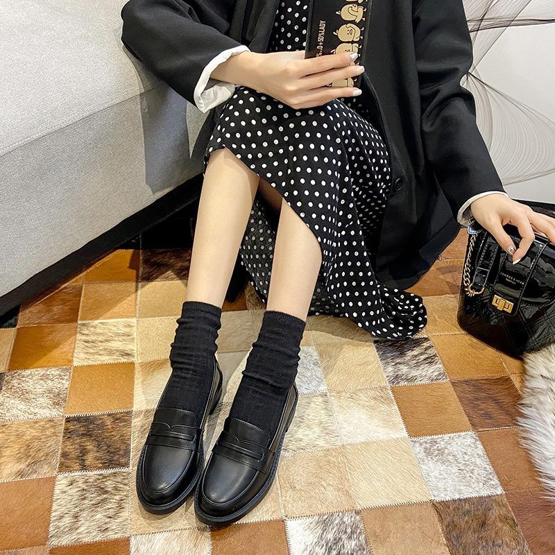 Мокасины на платформе с одной педалью, одинарные туфли, женские весенне-летние британские маленькие кожаные туфли, рабочие, плоские, черные, ретро