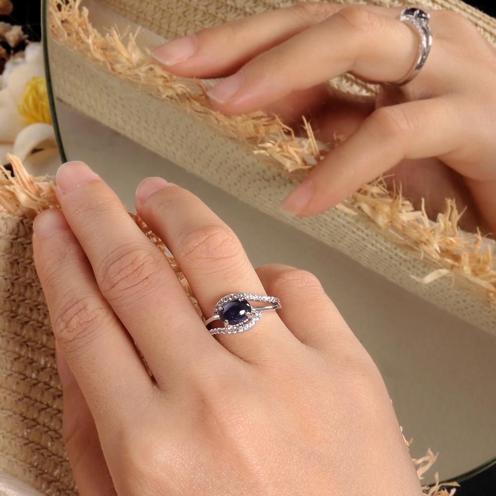 Элегантный и благородный сентябрьский камень-природный синий сапфир серебряное кольцо для женщин ювелирные украшения для банкета и свадьбы