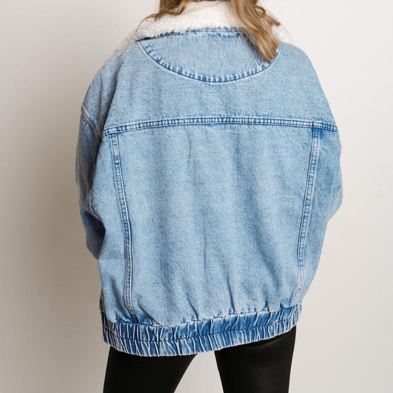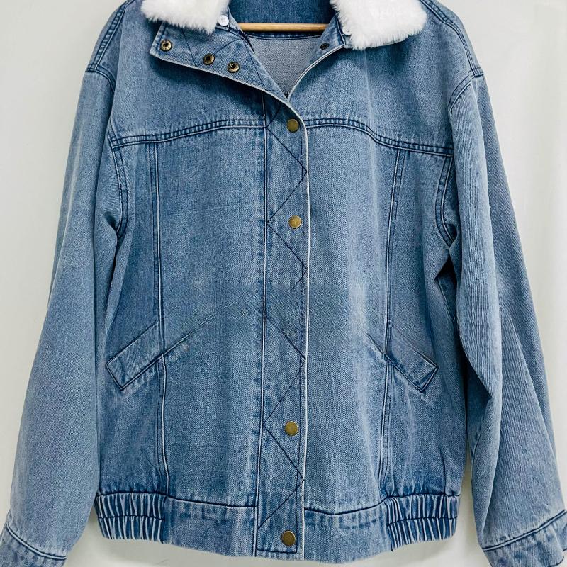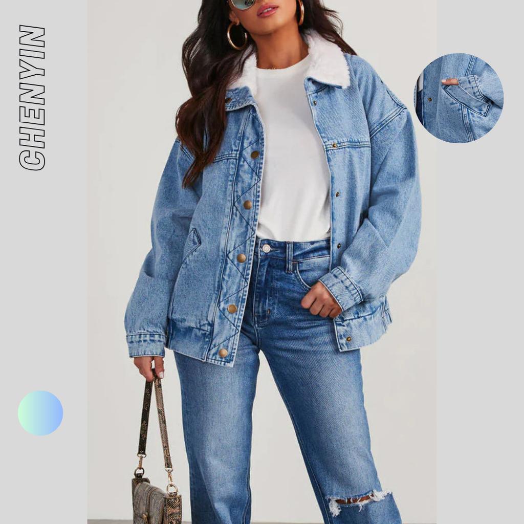 Женская новая осенне-зимняя модная куртка из денима, хлопка, свободного мехового воротника, большого лацкана, стеганая куртка с двойным вставным карманом Y2k